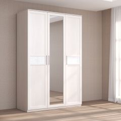 Кэт-4 Шкаф 3-х створчатый 1 зеркало (Бодега белая/Экокожа Caiman белый)