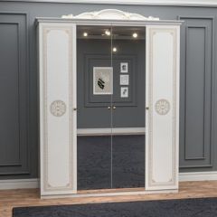 Шкаф 4-х дверный с зеркалами (12.244) Грация (белый/золото) вы можете купить в интернет-магазине Larana.market по цене 57 790 руб. Только качественная мебель от Российских брендов. Если у вас возникли вопросы или вам нужна консультация по наличию, срокам доставки, ценам, обращайтесь любым удобным способом.